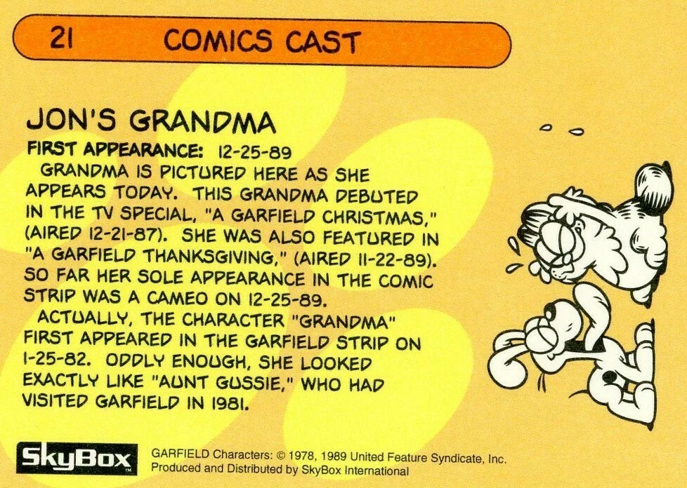 1992 Skybox Garfield Premier Edition 21 Jon 039 S Grandma Ebay